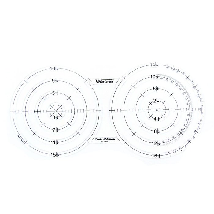 Régua círculos possui medidas em centímetros. A régua facilita corte, marcação e o uso dos cortadores. Ideal para criar peças para mantas e colchas de retalho.