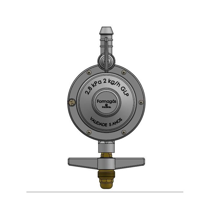 | Características Técnicas | Aplicação para botijões de gás GLP para uso doméstico, consumo de até 1 kg/h, conexão de entrada: Borboleta 5/8 UNC, Saída 3/8` para mangueira e mangueira de 0,80m. |