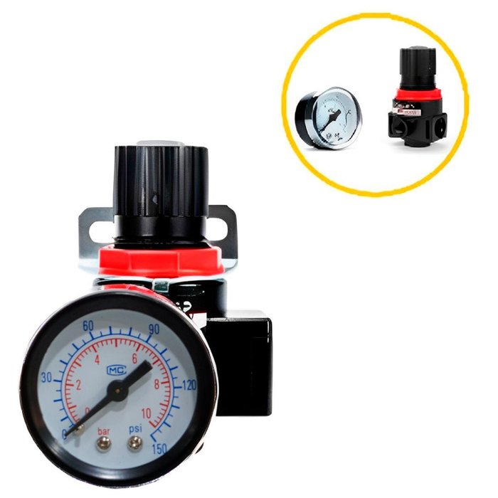 Regulador Pressão Mini Compressor 0 À 150 Psi com Manômetro 1/4 Ar-2000 Rotta 376 Cod - 4003