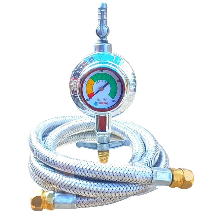 regulador rb1 max top rede rossi acompanha mangueira de borracha nitrílica com revestimento em malha de aço flexível em inox extremamente durável e reforçada de 1,5 metros de comprimento pontas com fixação sistema de engate rápido tipo dako dako.