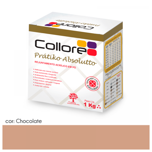 O Rejuntamento Collore Pratiko Absolutto é formulado à base de Ligantes, Agregados Minerais Beneficiados, Pigmentos Inorgânicos, Aditivos e Resinas Especiais. Tipo II.