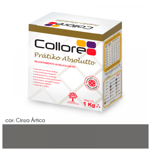 O Rejuntamento Collore Pratiko Absolutto é formulado à base de Ligantes, Agregados Minerais Beneficiados, Pigmentos Inorgânicos, Aditivos e Resinas Especiais. Tipo II.
