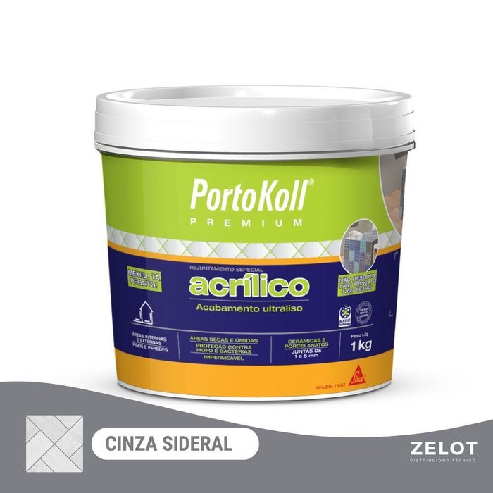 Rejunte Acrilico Premium Portokoll 1kg Cinza Sideral - Acabamento Ultrafino e Ultraflexível