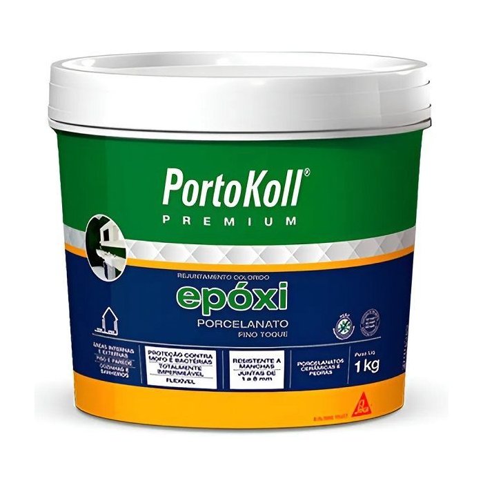 O PortoKoll PREMIUM Epoxi Porcelanato é um produto tricomponente que, quando preparado e aplicado de acordo com as instruções desta embalagem, promove alta resistência mecânica, flexibilidade e textura fina.