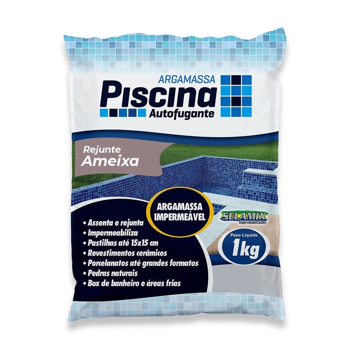 Rejunte Piscina Impermeável é destinado ao rejuntamento de pastilhas, revestimentos cerâmicos, porcelanatos de médios e grandes formatos, e pedras naturais. Possui alta aderência e resistência, produto inodoro e não tóxico. Pode ser aplicada em ambientes internos e externos. Atende aos requisitos das normas ABNT NBR14992, como argamassa de rejuntamento Tipo II.