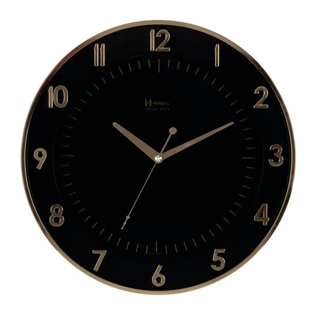 Relógio 6803 Parede 35cm Tic-tac Preto Dourado Ouro Herweg Dourado Claro