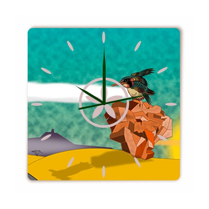 Relógio atacama quadrado -Coloque mais arte em seu tempo! Este relógio com trabalho artístico de sua escolha irá dar mais graça aos seus 86400 segundos diários. Pendure-o ou colecione! Detalhes: - Frente impressa com trabalho de arte, - Movimento de quartzo, - Hardware de montagem incluído (Pilha NÃO inclusa), -Produzido em Polietileno resistente a queda e umidade,- Não utilizar material abrasivo na limpeza, - Artista: Patricia Camargo, - Data estimada do envio: 8 - 15 dias úteis