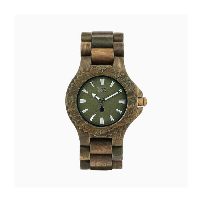 Este modelo é um dos relógios mais versáteis, pode ser usado em atividade ao ar livre como em reuniões sociais sofisticadas. O charme da madeira esverdeada junto ao irresistível aroma natural são os destaques do Date Army.