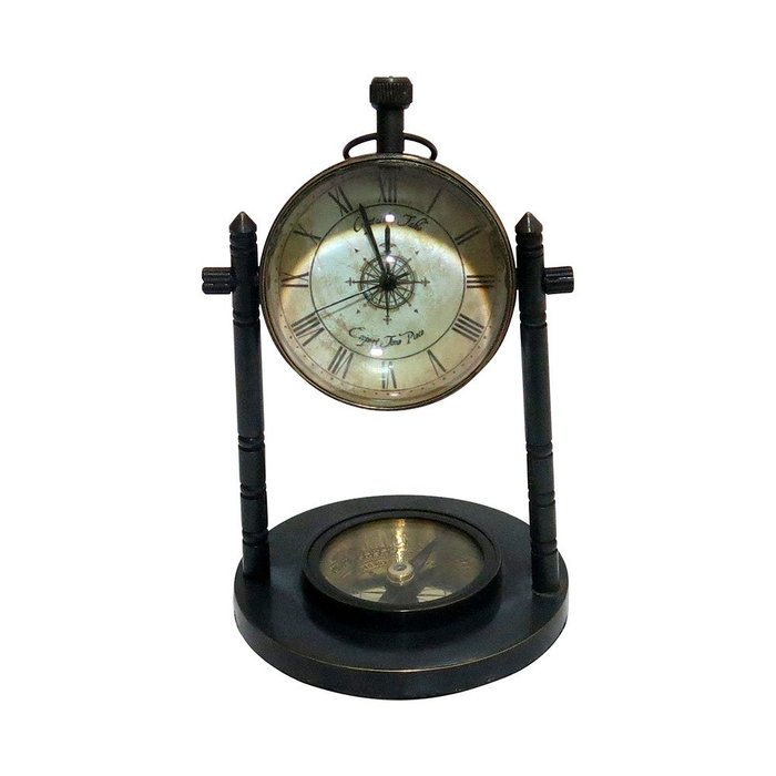 RELOGIO DE MESA COM BUSSOLA DE METAL PRETO BTC Decor