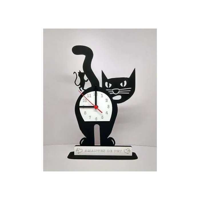 Relógio de Mesa ou Parede Gato com Rato em cima Linha Pet