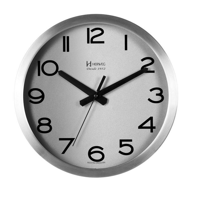 Relógio de Parede Alumínio Escovado Prata 30cm Herweg