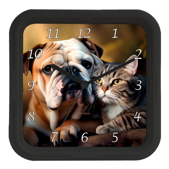 Relógio de Parede Ambiente Ref: 119095-145 Preto Cão e Gato Preto
