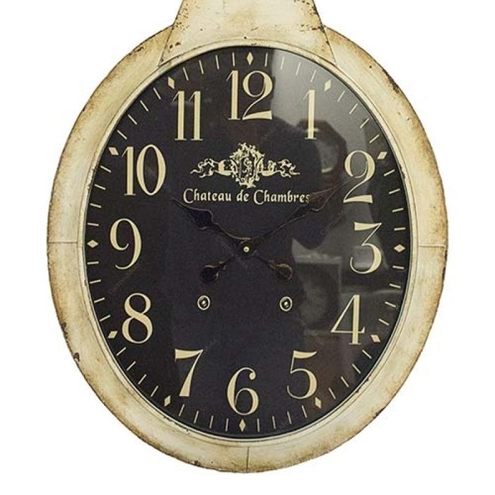 Relógio de Parede Chateau Branco com Fundo Escuro Oval