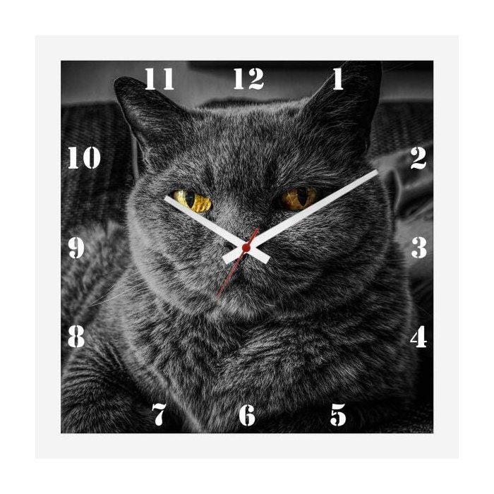 Relógio de Parede Personalizado Pet Gato Cinza Chartreux 30x30cm