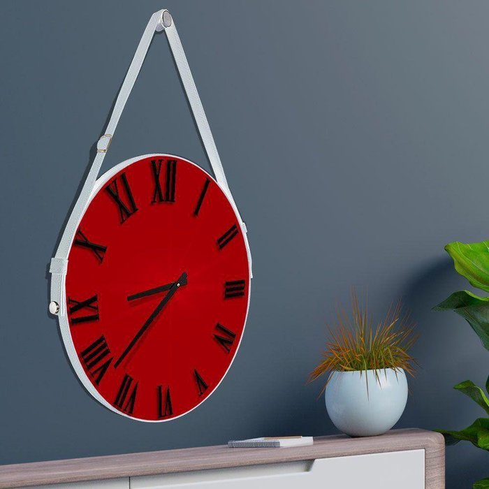 Relógio De Parede Premium Vermelho Com Alça E Números Romanos Preto 50Cm Branco