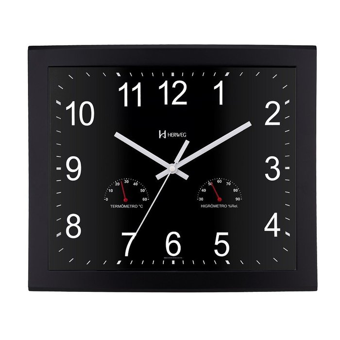 Relógio de Parede Retangular Higrômetro e Termômetro Preto Herweg 6906