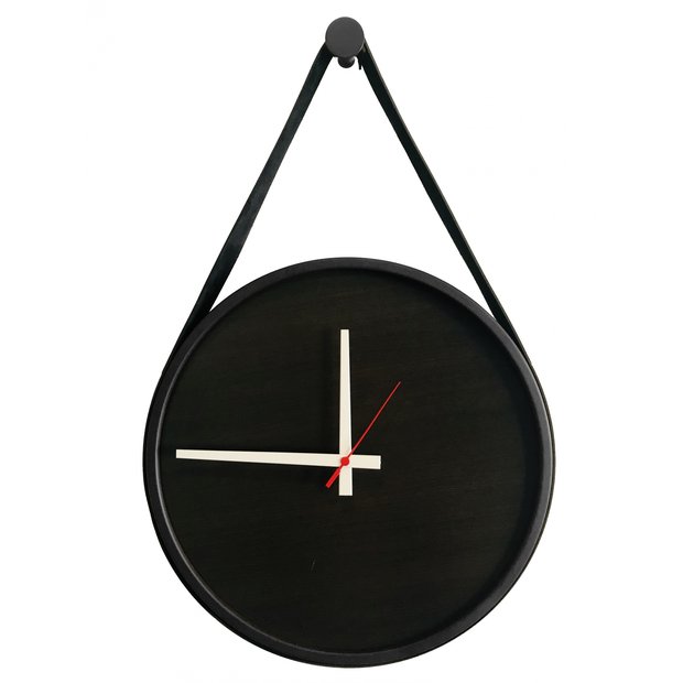 Relógio Decorativo Adnet Preto Alça Corino Preta Mostrador Preto Ponteiro Branco 20cm Redondo Preto