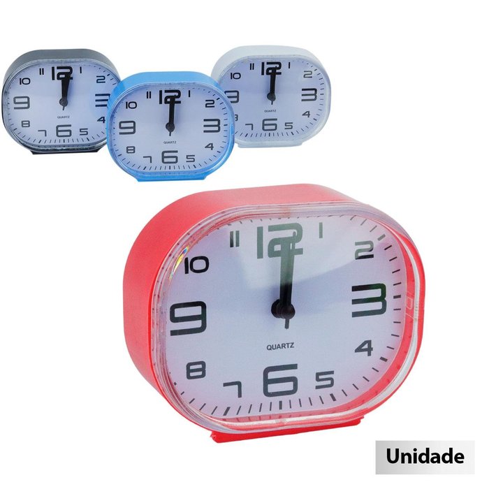 Relógio Despertador Analógico de Mesa 10cm Oval Azul Azul
