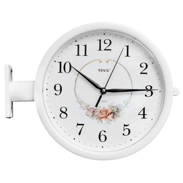 Relógio Dupla Face De Parede Estação Branco Floreal - Relógio quartz decorativo