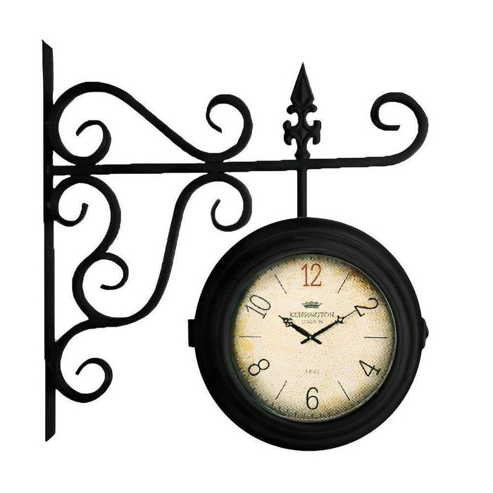 Relógio Estação Dupla Face Retrô Europeu Preto em Metal Preto