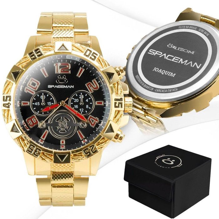 Adquira já o Relógio Orizom Spaceman e tenha um item exclusivo, feito especialmente para você! Com um elegante banho de ouro, este relógio é sinônimo de sofisticação e estilo. E o melhor de tudo: você pode inserir o seu nome na tampa, tornando-o ainda mais especial.