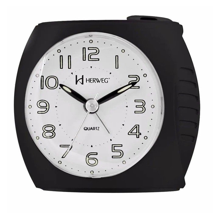Relógio Silencioso Despertador Preto Prata Branco Novo Luz Herweg 2586 Preto - Relógio silêncioso de cabeceira