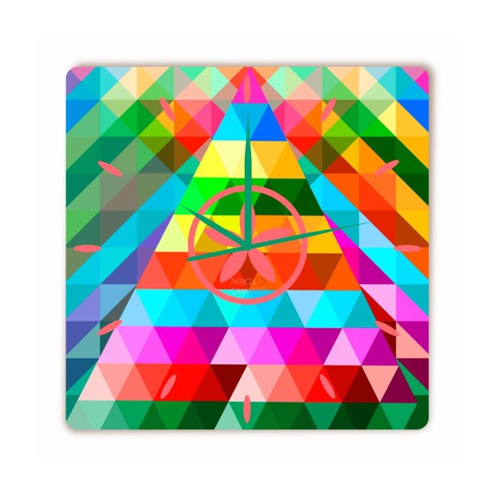Relógio mil pirâmides quadrado -Coloque mais arte em seu tempo! Este relógio com trabalho artístico de sua escolha irá dar mais graça aos seus 86400 segundos diários. Pendure-o ou colecione! Detalhes: - Frente impressa com trabalho de arte, - Movimento de quartzo, - Hardware de montagem incluído (Pilha NÃO inclusa), -Produzido em Polietileno resistente a queda e umidade,- Não utilizar material abrasivo na limpeza, - Artista: Patricia Camargo, - Data estimada do envio: 8 - 15 dias úteis