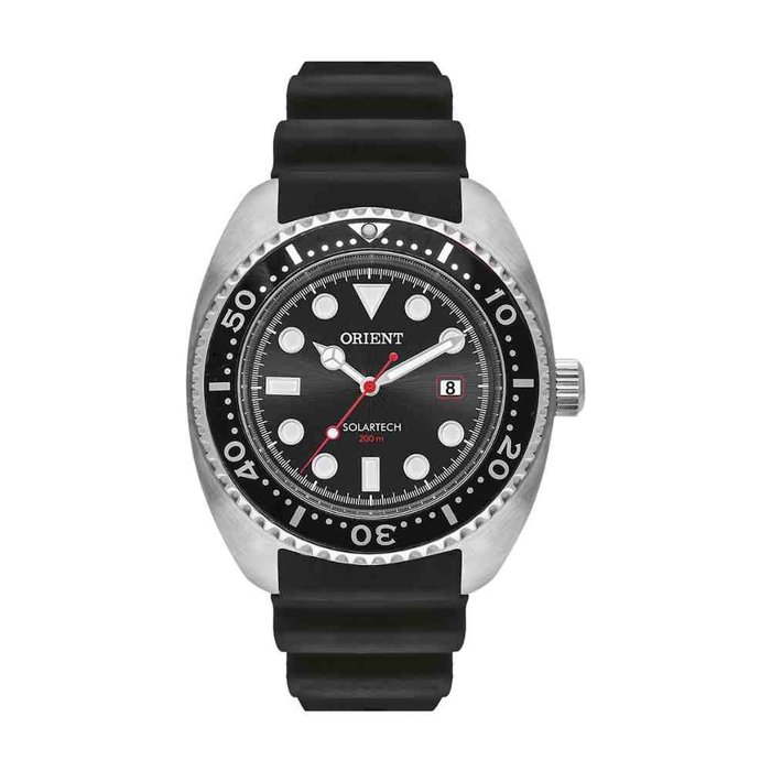 Relógio Orient Solartech Prata Preto Masculino MBSP1038 P1PX Na Elister, a qualidade é uma prioridade em todos os nossos produtos e serviços. Nós nos esforçamos para oferecer aos nossos clientes uma ampla variedade de acessórios, incluindo relógios e óculos de sol, com as melhores marcas e estilos. Todos nossos produtos são originais e com certificado de garantia. Nós nos orgulhamos de nossa seleção de produtos, que são escolhidos com atenção aos detalhes e qualidade. Além disso, a nossa equipe é treinada para oferecer um atendimento excepcional, garantindo que cada cliente seja tratado com o respeito e a atenção que merece. É mais que estilo, é Elister! Todos os produtos são originais e acompanham:Embalagem original;Manual em português;Garantia do fornecedor;Nota fiscal simplificada, que vai colada junto à etiqueta. ESPECIFICAÇÕES TÉCNICAS - Marca: Orient- Gênero: Masculino- Tipo de mostrador: Analógico- Funções: Calendário com dia do mês, mostrador sunray e movimento solar- Tipo de fecho: Fivela- Cor da caixa: Prata- Cor do mostrador: Preto com detalhe em prata- Cor da pulseira: Preto- Material da caixa: Aço inox- Material da pulseira: Silicone- Largura da caixa: 4,5 cm- Espessura da caixa: 1,2 cm- Comprimento do relógio: 24 cm- Resistência à água: 20 ATM (200m)- Garantia: 15 meses