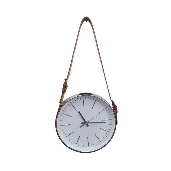 Relógio Parede Com Cinto De Couro Fundo Branco