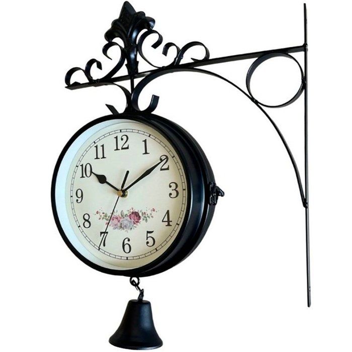 Relógio Retrô com Sino Estação Trem Dupla Face Floral Preto Preto