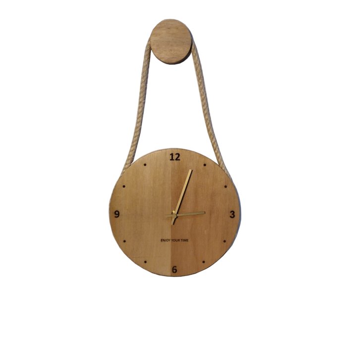 Relógio de parede Rustico com corda de sisal e suporte na cor natural,