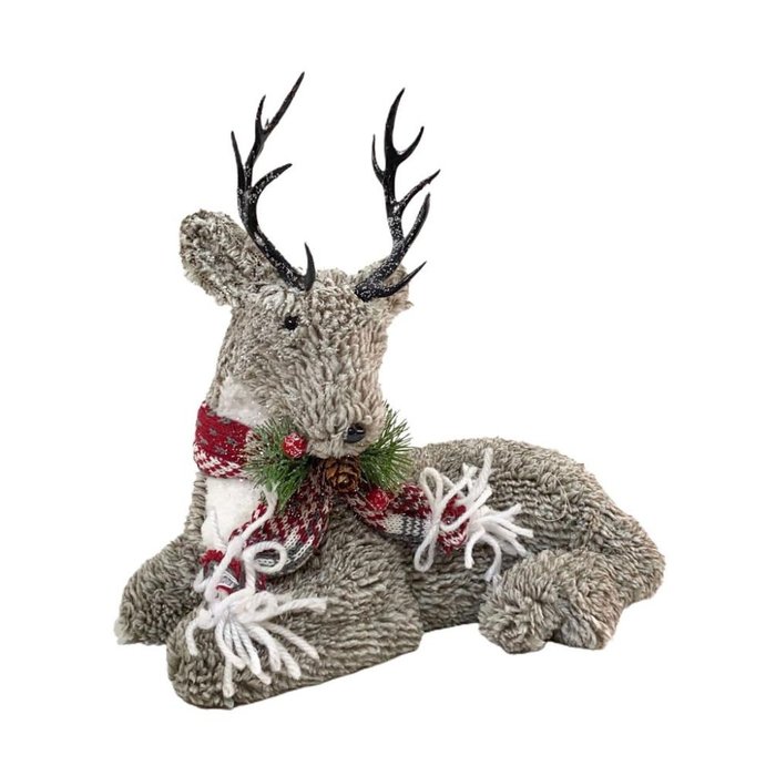 Rena Decorativa Deitada com Cachecol e Pinha