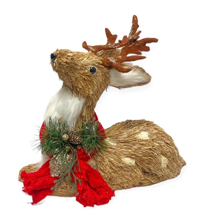 Rena Natural Palha Deitada com Cachecol 30cm natural