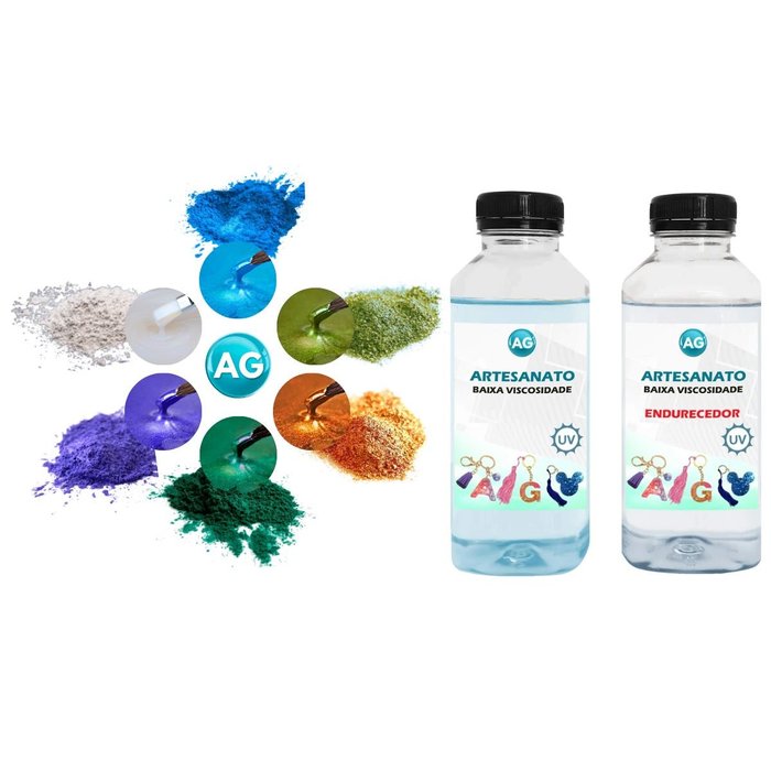 Resina Epoxi p/ Artesanato Baixa Espessura 1KG + 6 Cores Metálicas Resinas ag