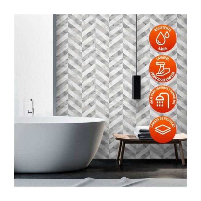 Pode ser aplicado em locais úmidos como banheiro e cozinha, pois o papel suporta água devido à sua camada protetora