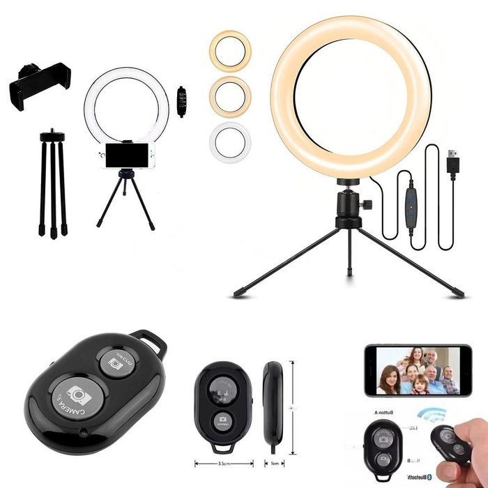 Eleve a qualidade das suas fotos e vídeos com o Kit Ring Light de 6 polegadas e Disparador Remoto de Fotos! Com essa poderosa combinação, você terá uma iluminação profissional e controle total sobre o obturador da câmera, garantindo resultados incríveis.