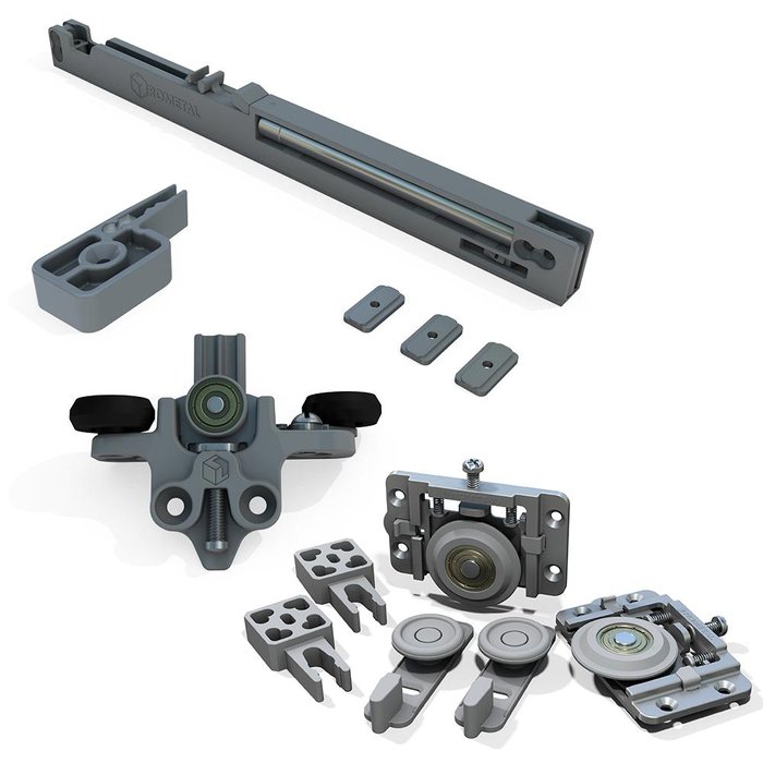Possuem amortecimento, rolamento blindado, sustenta portas de até 60 Kg e possui trava antidescarrilhamento.