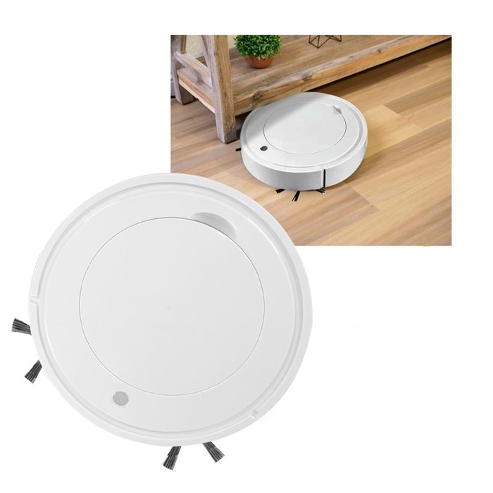 Robô inteligente com 3 funções, aspirador de pó, varre, passa pano e com sensor anti-colisão e anti-queda, trabalhando com eficiência e evitando danos.