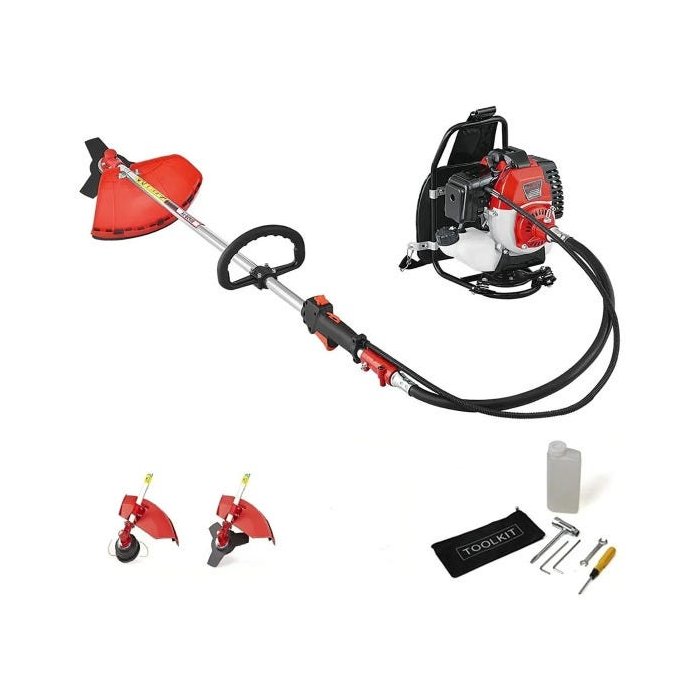 Roçadeira Costal a gasolina com motor muito eficiente, é ideal para trabalhar em terrenos acidentados e encostas (roçada, derriça e esqueletamento), a possui motor acoplado a um colete que deve ser utilizado nas costas, desta forma o peso ficará melhor distribuído, proporcionando mais conforto.specificações:- Potente e prática de manusear, corta caules de até 10cm.- Sistema fácil de montar e com ajustes independente de guidão.- Motor: 2 tempos de 58cc- Mistura do combustível: Gasolina comum + óleo de motor de 2 tempos na proporção 25:1;- Potência: ALTA- Rotação Máxima: 14.000 RPM;- Filtro de ar: duplo;- Partida: Manual Retrátil leve;- Tipo de ignição: CDI (eletrônica);- Tanque de Combustível: 1,5 Litros;- Autonomia: 150 minutos;- Diâmetro de conte com nylon: 44 cm;- Haste: ajustável e ergonômica toda em Alumínio Cromado Anticorrossivo;- Fácil Manutenção.Contém:- 01 motor da Roçadeira 58cc a gasolina;- 01 cortador de Nylon; - 01 Lâmina- 01 manual ;- 01 kit de ferramentas;- 01 protetor de grama;- 01 Galão medidor para mistura de combustível;- 01 Um acelerador multi botoes- 01 Haste;- 01 Cinta (alça);