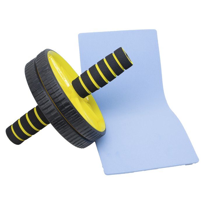 RODA DE ABDOMINAL / LOMBAR KIT COM TAPETE SIX PACK ACADEMIA:Amarelo Amarelo