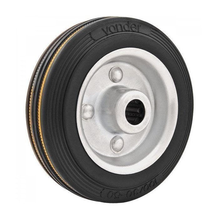 | Informações Complementares | Diâmetro da roda.: 6" - 152 mm | Largura da roda: 40,0 mm | Material da roda.: Borracha | Cor da roda: Preto | Diâmetro do eixo da roda.: 20,0 mm | Tipo do eixo da roda: Com rolete | Capacidade de carga da roda: 130 kg |
