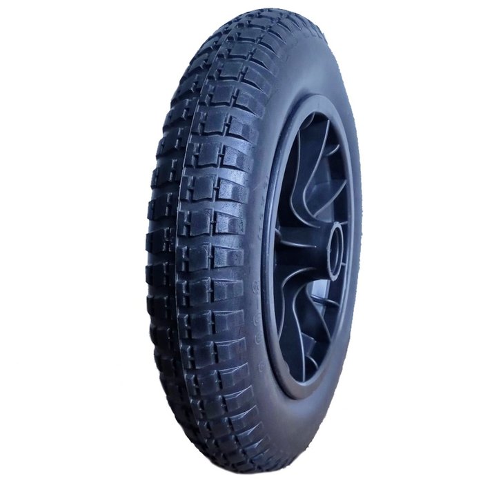 Roda Maciça 3.25x8 é produzida em poliuretano com densidade controlada, não fura, com alta durabilidade dispensando manutenção e surpresas com pneu murcho Produto leve e resistente. Aro em polipropileno de alta densidade, confere durabilidade e não enferruja furo bucha em abs de 16mm podendo ser aberto para 25mm Ideal para: - Carrinho Armazém - Carrinho Uso Geral - Caçamba de Lixo - Carrinho Plataforma - Carrinho de Carga - Carrinho HotDog - Carrinho de Mão - Carro Plataforma Informações Técnicas - Material do Pneu: Poliuretano - Material do Aro: Polipropileno - Rolamento: Não Possui - Furo: 16mm podendo ser aberto para 25mm - Largura do Eixo: 87mm - Capacidade de carga: 100kg - Diâmetro 350mm - Largura 75mm - Peso da Roda com Pneu: 1.420g - Velocidade máxima: 4Km/h Informações Importantes: - Uso somente não motorizado