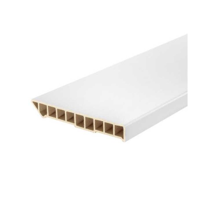 É fabricado com recobrimento em PET, material feito de polietileno (plástico) na cor Branco Final, deixando o acabamento idêntico ao das Portas no Branco Final.