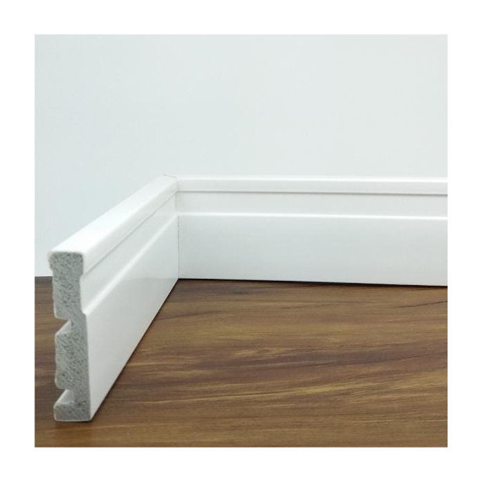 Rodapé Guarnição De Poliestireno Frisado Branco Acabado 7 Cm