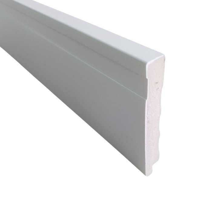 CONTÉM: 01 Barra de Rodapé de Poliestireno Frisado Branco de 2,4 Metros cada;
