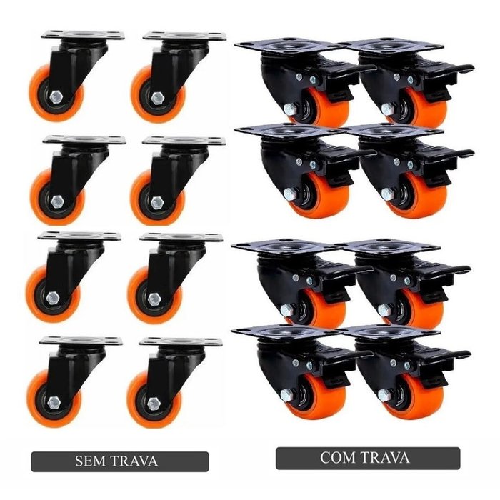 Rodinha Rodízio Reforçada Silicone 4 S/ Trava + 4 C/ Trava laranja