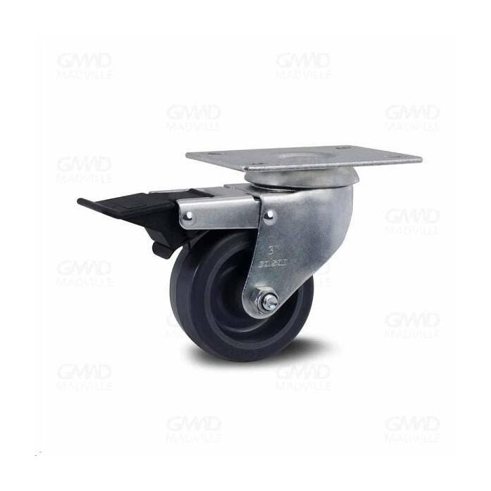 Rodizio 3" Placa Giratoria Cinza com Freio
