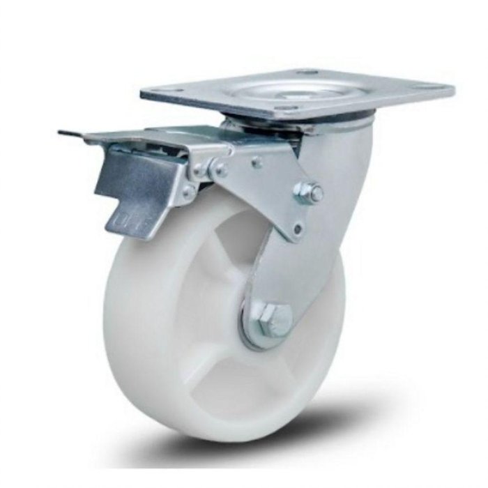Rodizio 6x2 C/freio Roda de Nylon C/ Rolamento 450 Kg Branco