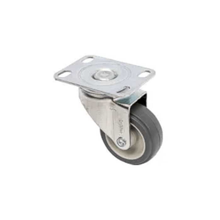 Roda injetada em resina termoplástica cinza (PVC), com núcleo em polipropileno, resistente à água, graxas, sais, ambientes com álcoois, glicóis, ácidos orgânicos, minerais fracos e vapor saturado. Excelente para aplicação em pisos lisos em bom estado de conservação, para uso de cargas leves. Melhor opção em qualidade e economia.