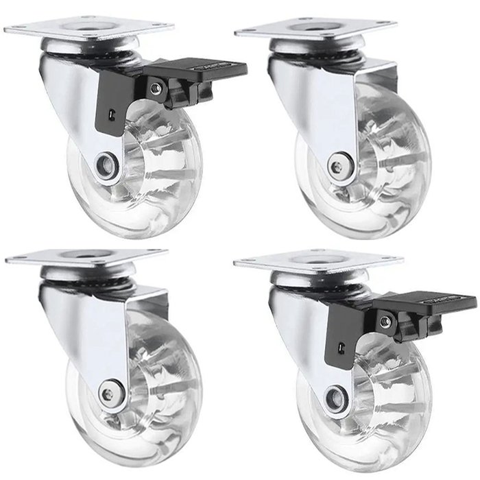 Rodizio de Silicone para Moveis de 75mm (2 com Freio + 2 sem Freio) - Capacidade de Peso 240kg